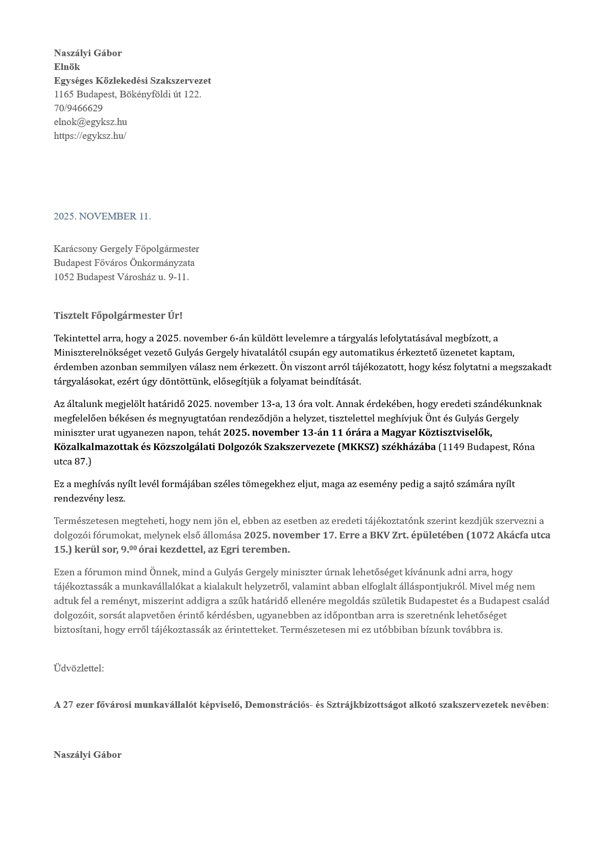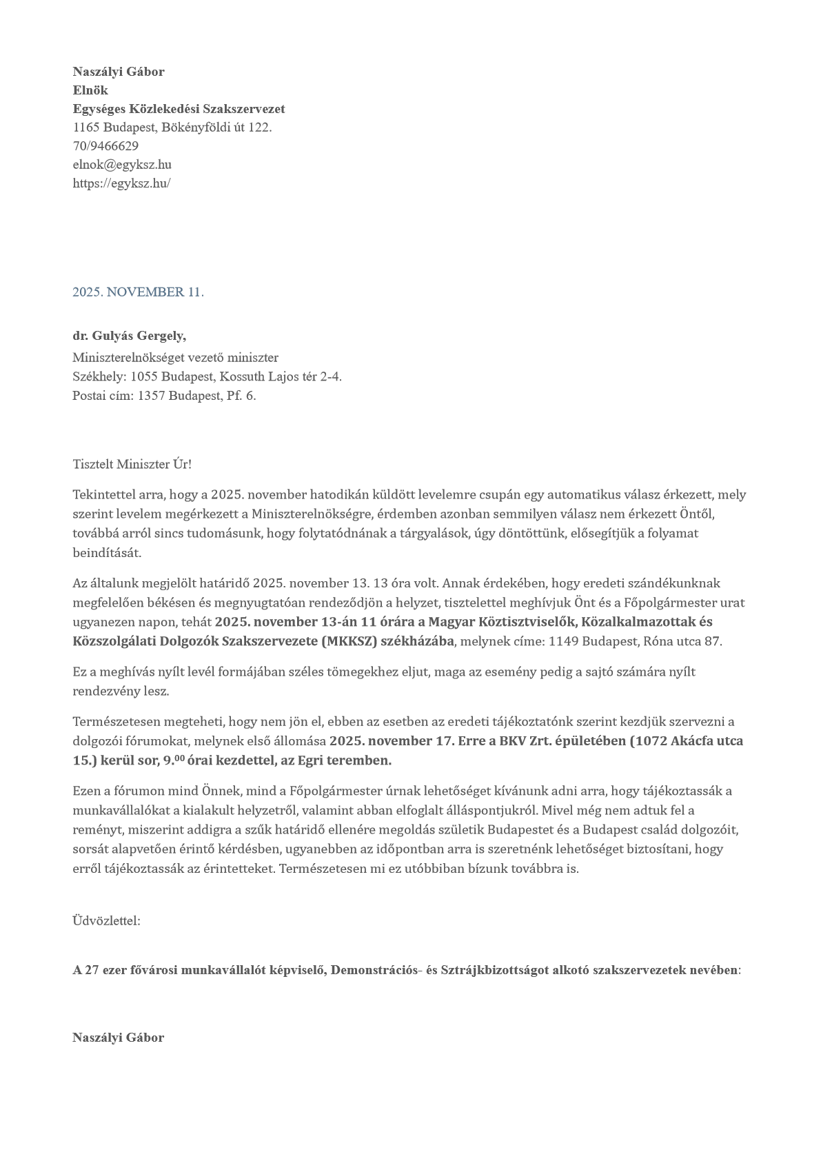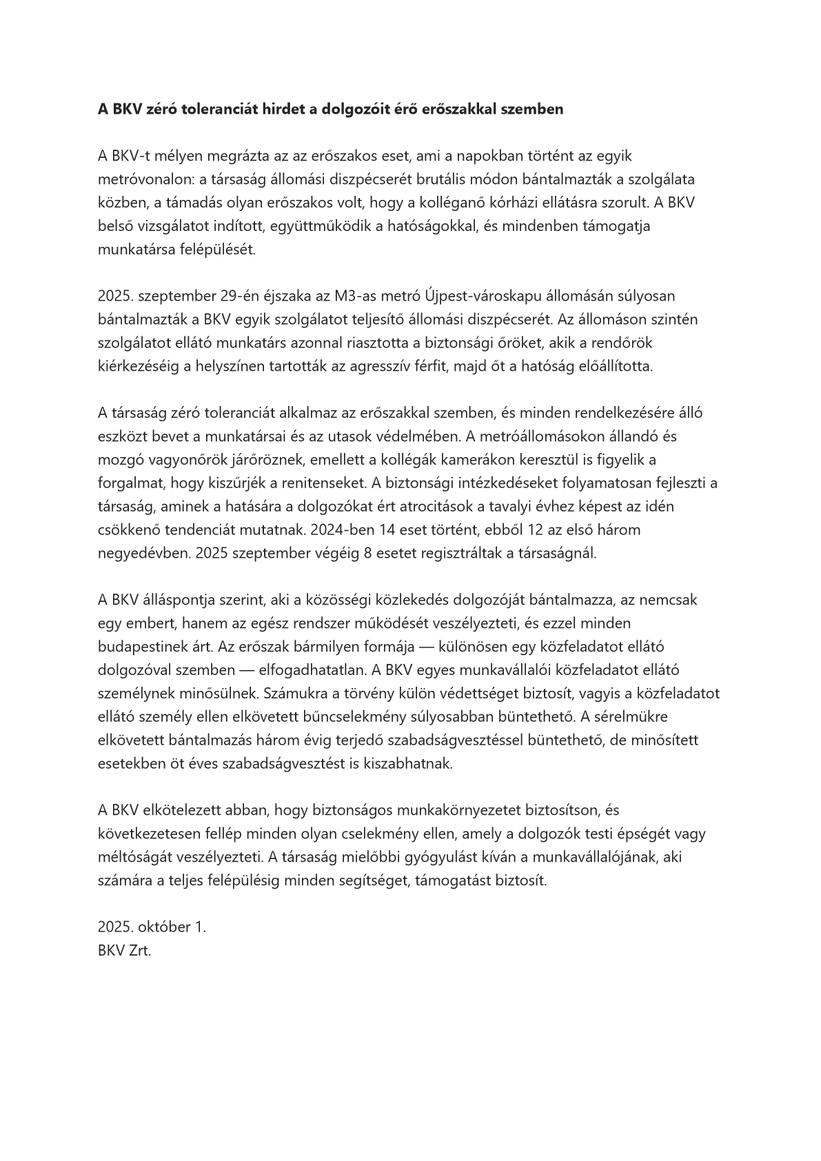 A Klubrádió, Szolidaritás című műsorának 2025. május 14.-én elhangzott adásában, Selmeci János műsorvezetőnek nyilatkozott Gulyás Attila, a Városi Tömegközlekedési Dolgozók Szakszervezeti Szövetségének elnöke, a főbb metró vonalak meghosszabbított nyitvatartásáról.