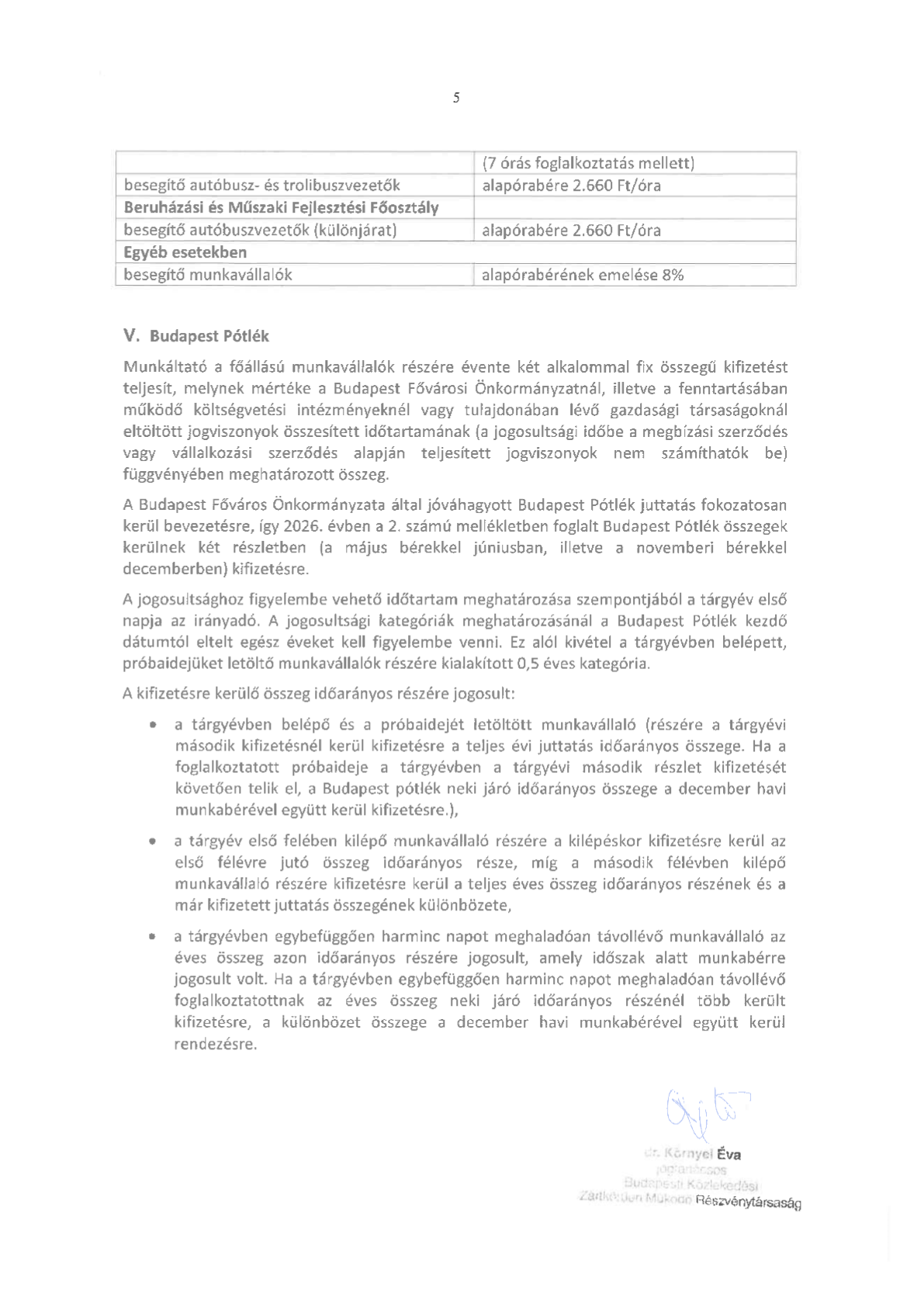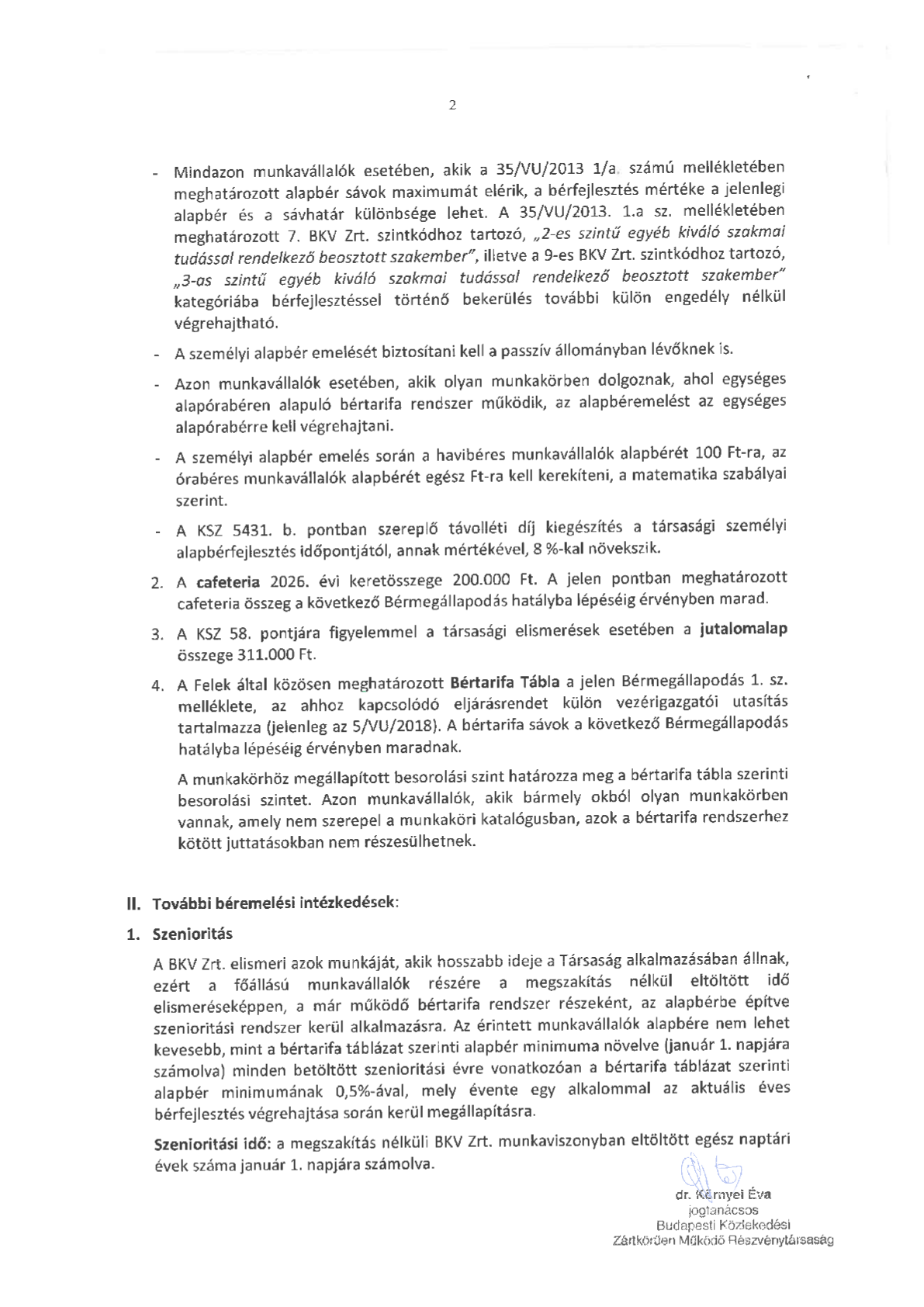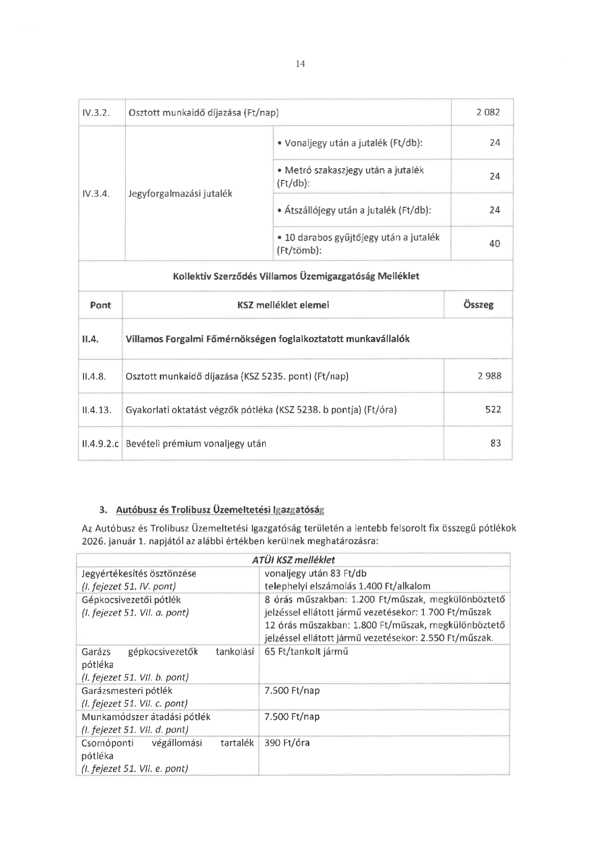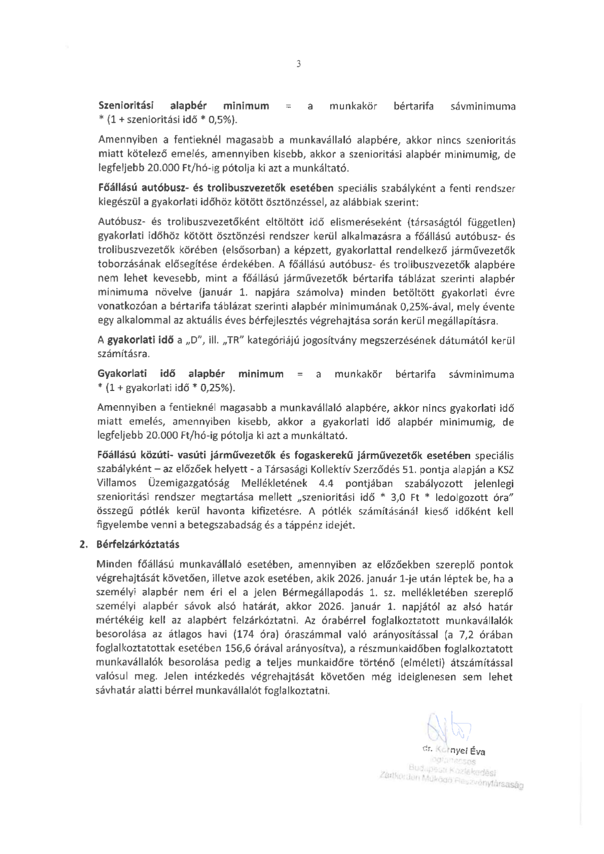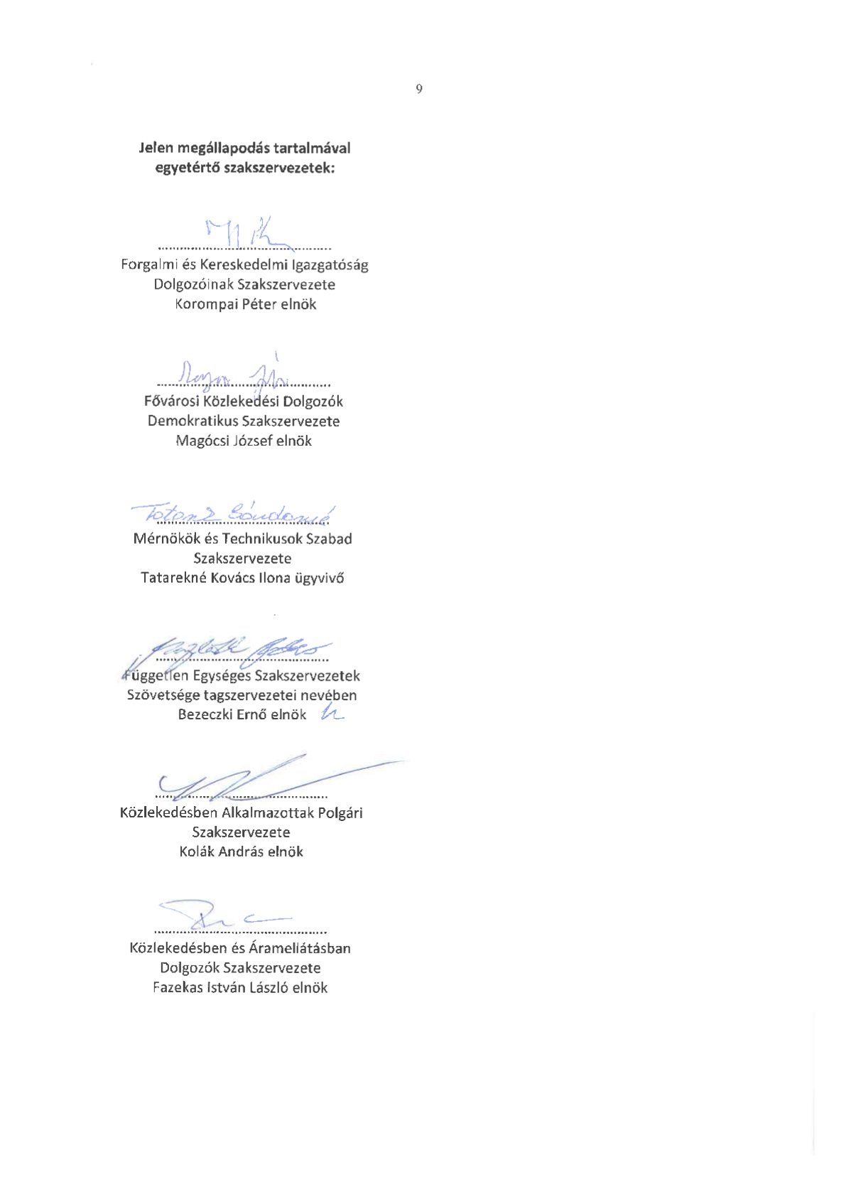 • Kollektív Szerződés, Metró Üzemigazgatóság Melléklet