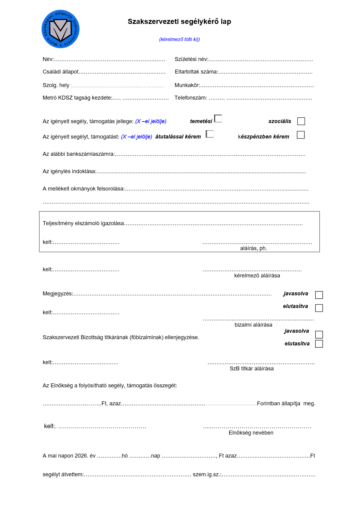 FONTOS: A betegség miatt igényelt segély esetén, leadás előtt, ne felejtsétek leigazoltatni a területi humánügy intézővel a segélykérő lapot!